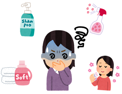 強い香りの原因は、洗剤や柔軟剤、化粧品などに含まれる合成香料(化学物質)です。