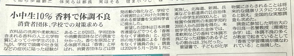 最近気になるのが、学校の教室などでも、この強い香りがして、困っていいる子がいるのではないかということです。