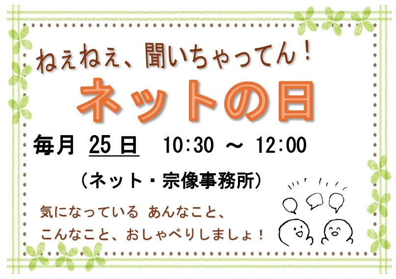 月によって、いろいろな曜日になるので、ぜひ、ご参加ください。