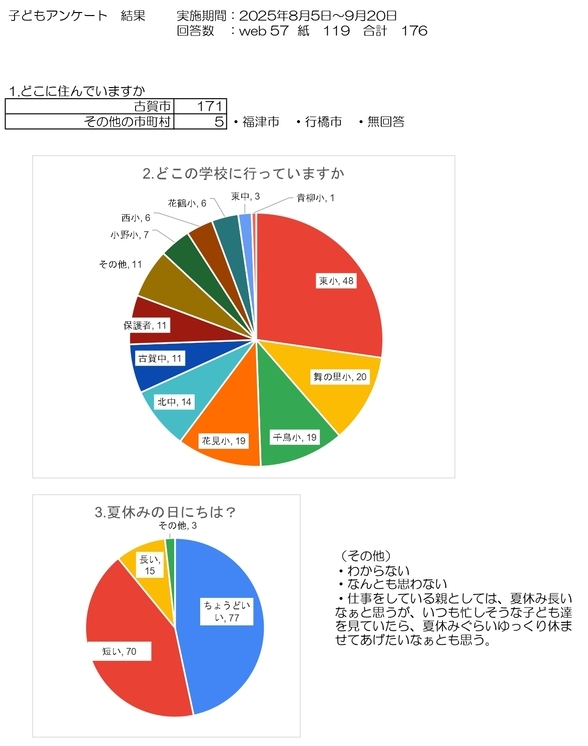 2025年8月5日から9月20日に子ども達を中心にアンケートを実施しました。