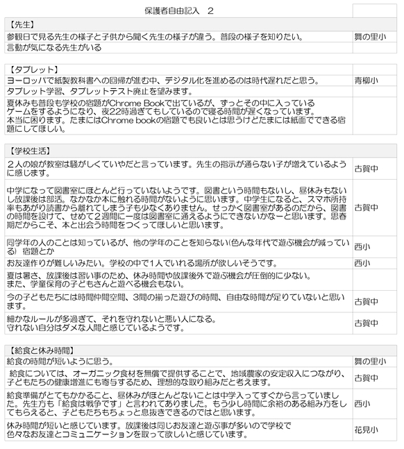 アンケート結果をもとに9月27日のしゃべり場で意見交換を行いました。