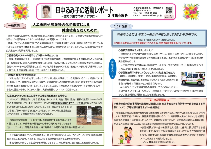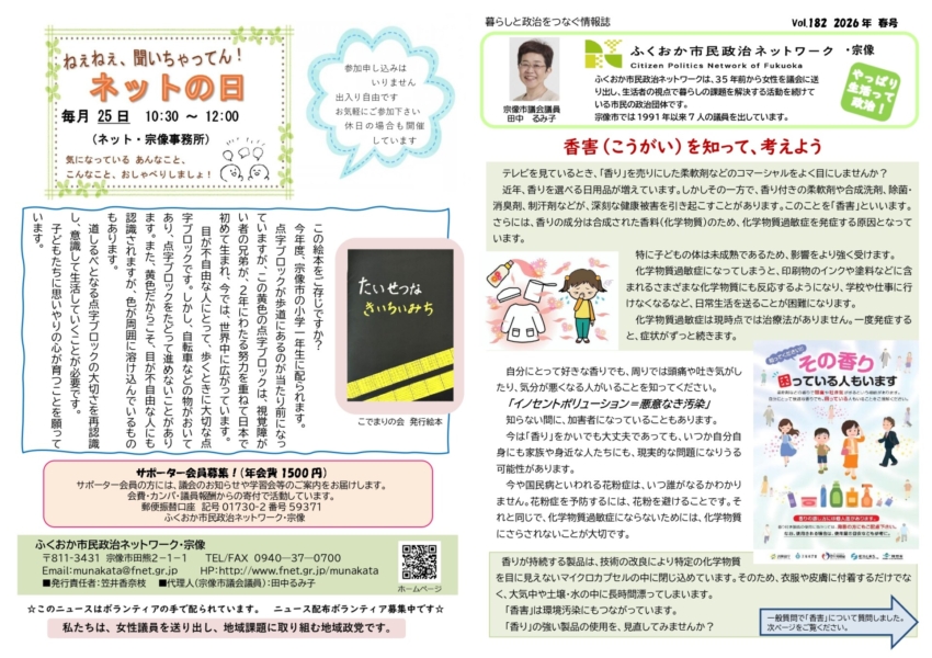 一般質問で、「香害」のことを取り上げたので、1面も関連した記事です。